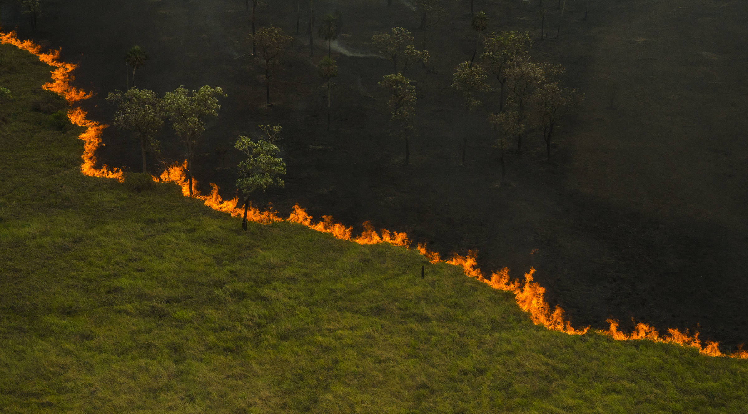 Fogo consumindo área de pastagem nativa, típica da região pantaneira. Foto: divulgação