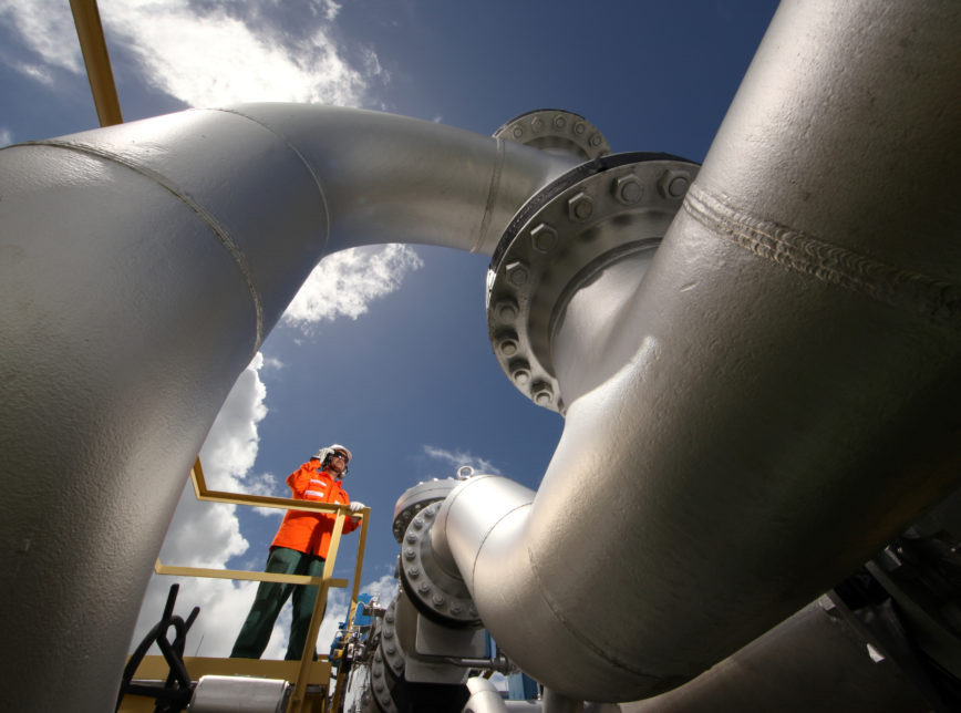 Homem trabalhando na Estação de Distribuição de Gás de São Francisco do Conde