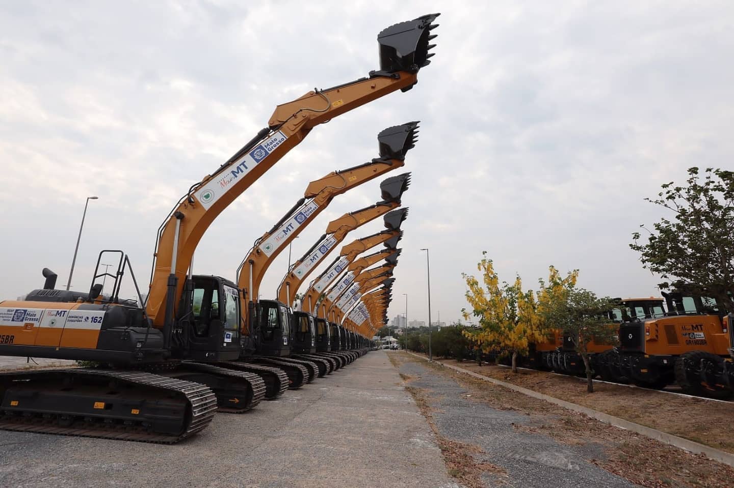As dezenas de escavadeiras hidráulicas, pás carregadeiras, caminhões, carros, moto-niveladores e diversos equipamentos entregues aos municípios. Uma mobilização envolvendo toda a base governista, bancada federal e Assembleia Legislativa.
